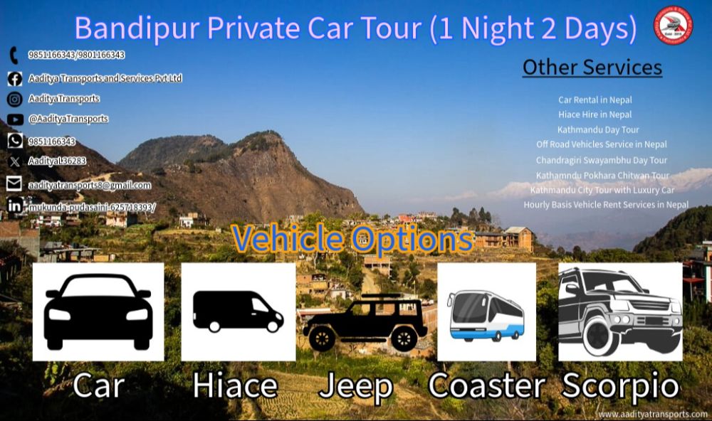 Bandipur is located in Tanahun District, about 143 km from Kathmandu, and takes approximately 4–5 hours by road, depending on traffic and highway conditions.